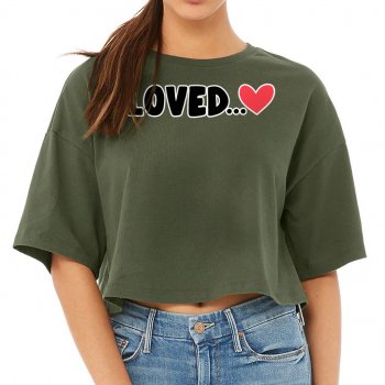 Loved Women’s Crop Tee Shirt – Cute Heart Cropped T-Shirt – Themed Crop Top