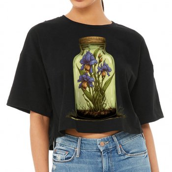 Themed Women’s Crop Tee Shirt – Flower Bottle Cropped T-Shirt – Printed Crop Top