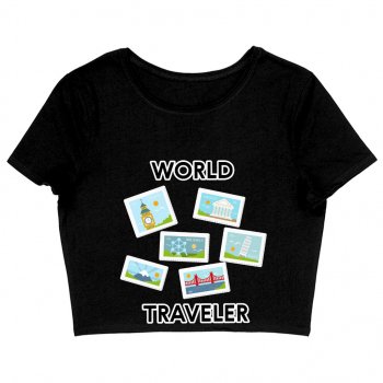World Traveler Women’s Cropped T-Shirt – Unique Crop Top – Art Cropped Tee