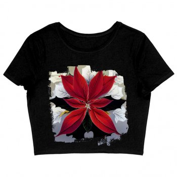 Flower Design Women’s Cropped T-Shirt – Printed Crop Top – Themed Cropped Tee