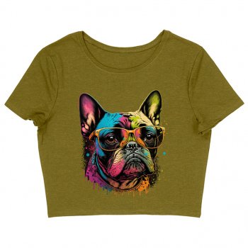 French Bulldog Women’s Cropped T-Shirt – Dog With Glasses Crop Top – Colorful Cropped Tee