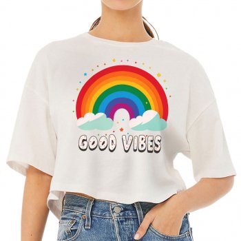 Good Vibes Women’s Crop Tee Shirt – Rainbow Cropped T-Shirt – Colorful Crop Top