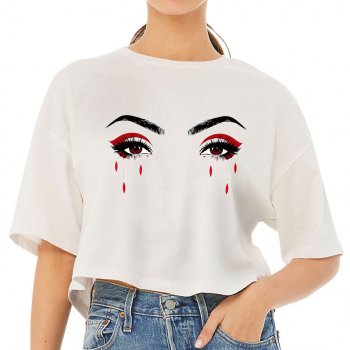 Eyes Design Women’s Crop Tee Shirt – Best Design Cropped T-Shirt – Themed Crop Top