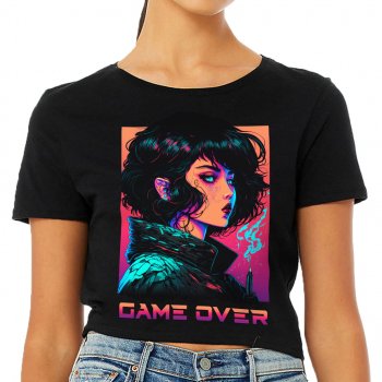 Game Over Women’s Cropped T-Shirt – Cool Art Crop Top – Illustration Cropped Tee