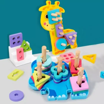 Wooden Animal Shape Puzzle & Stacking Toy for Kids’ Development